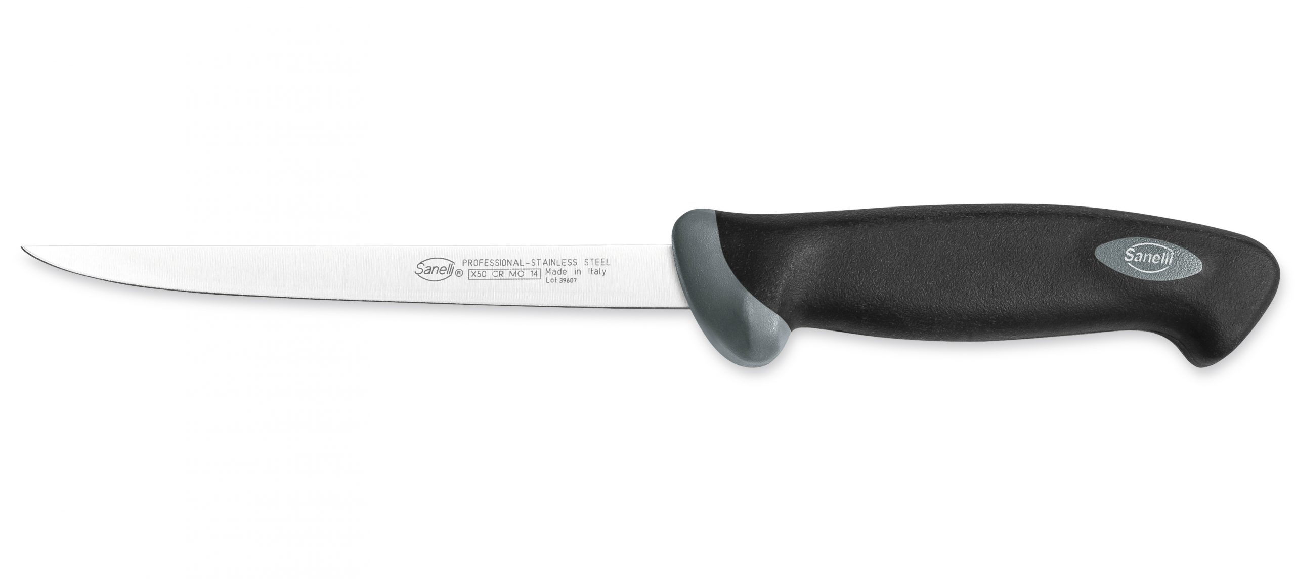 Couteau flexible, pour fileter les poissons de taille petite – moyenne. (Ex. perche, truite, sole).
