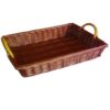 Vannerie en polypropylène teinté en forme de van ouvert vers un côté et munie de 2 poignées tressées. |