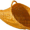 Vannerie en polypropylène teinté en forme de van ouvert vers un côté et munie de 2 poignées tressées. |